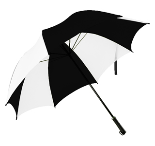 Description:   * Black electroplated frame and shaft * Overlocked panel joins * Black comfort handle with wrist cord * 190T high quality showerproof nylon fabric
